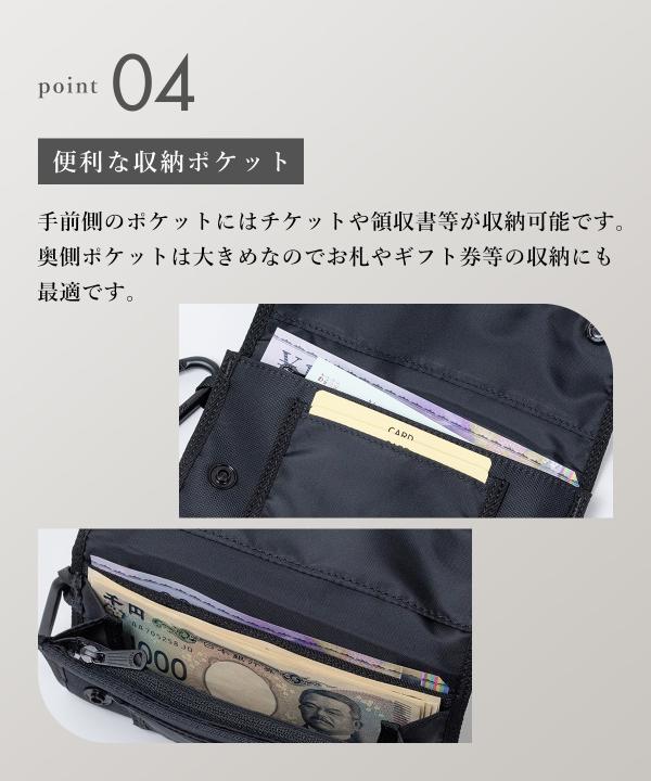 手前側のポケットにはチケットや領収書等、奥側ポケットは大きめなのでお札やギフト券等の収納にも最適です。