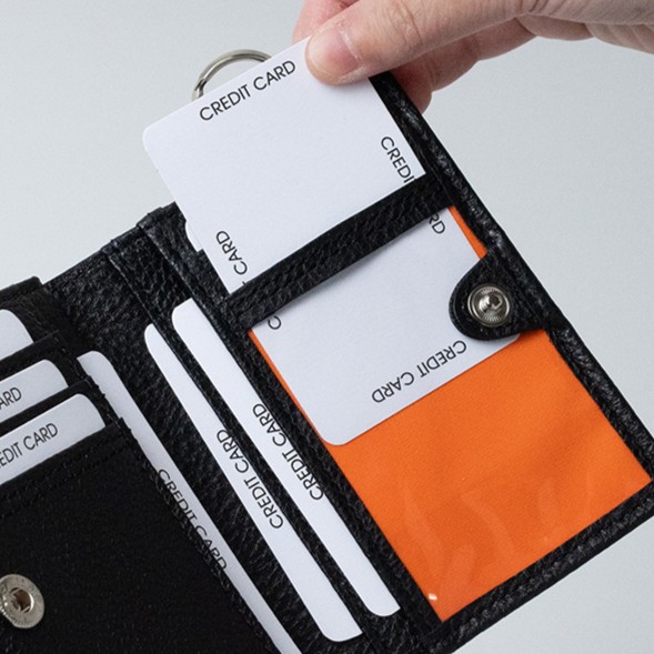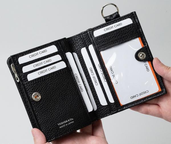 手のひらに収まるコンパクトなルックスながら、内装には多数のカード段を配置。紙幣やカードが見やすく、整理・収納がしやすい仕様です。