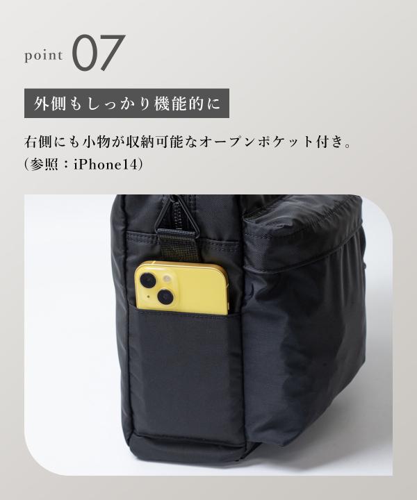表面にはマチ幅のある立体的なポケットがあり、すぐに取り出したい小物の収納に便利です。